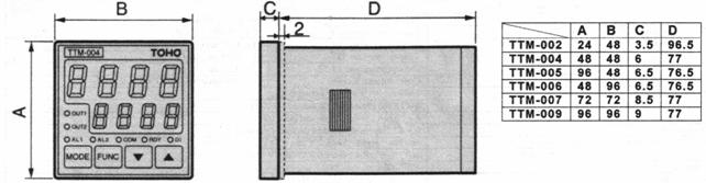 TTM-002 24x48mm; TTM-004: 48x48mm ~180g; TTM-007 72x72mm ~250g; TTM-005:96x48mm; TTM-006 48x96mm ~240g; TTM-009 96x96mm ~3 lOg |