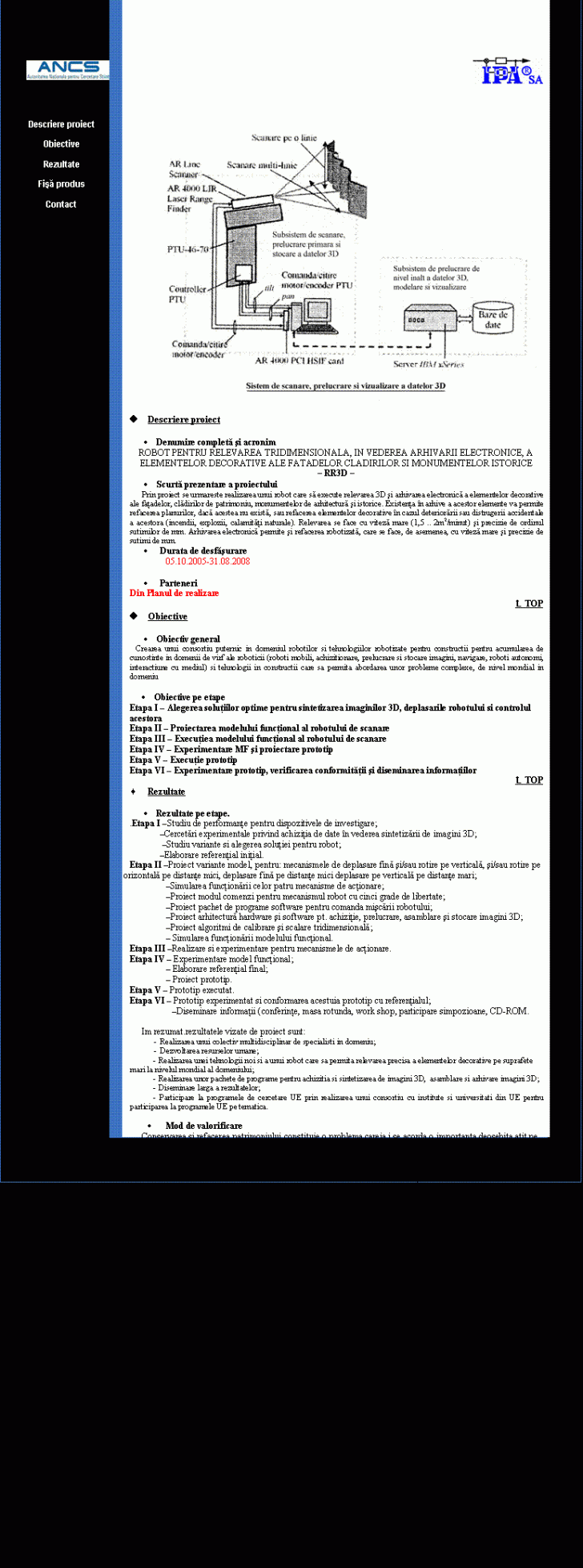 ROBOT PENTRU RELEVAREA TRIDIMENSIONALA, IN VEDEREA ARHIVARII ELECTRONICE, A ELEMENTELOR DECORATIVE ALE FATADELOR CLADIRILOR SI MONUMENTELOR ISTORICE - RR3D