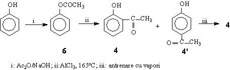 2.2. Sinteza si caracterizarea 2-hidroxiacetofenonei, 4, a fost realizata prin succesiunea de reactii indicate n Schema 3 const nd n acetilarea fenolului urmata de o transpozitie Fries si separarea izomerului orto.