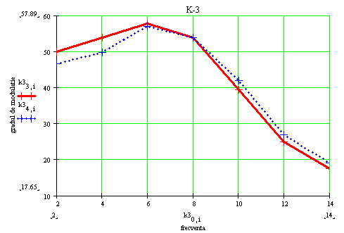 Caracteristicile amplitudine - frecventa ale amplificatorului pentru cele 3 pozitii ale comutatorului.