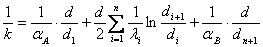 Pentru calculul coeficientului global de transfer termic k, în cazul unei tevi cu mai multe straturi, vom folosi urmatoarea relatie: