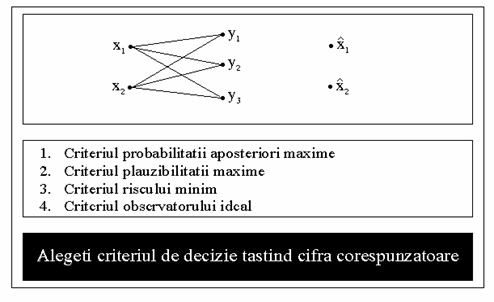 Este solicitat apoi criteriul de decizie care se doreste a fi folosit. Daca este cazul, se solicita si elementele matricei de costuri. Are loc o verificare a acestor elemente si daca ele nu sunt corecte se întrerupe executia si se solicita reintroducerea lor.