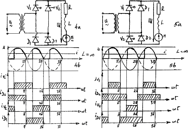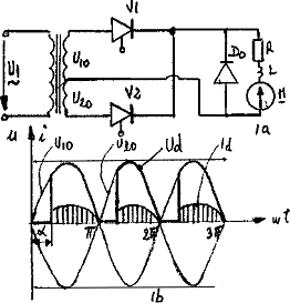 monofazat cu punct median si din doua tiristoare V1, V2. Dioda D0 numita