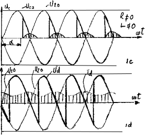 cazul sarcinilor pur rezistive (figura 1b) si pentru unghiuri de comanda