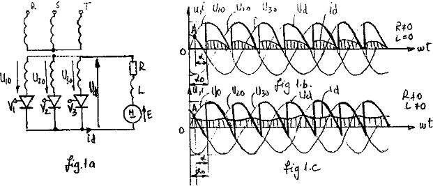 Redresorul trifazat comandat cu punct median are schema de principiu data in figura 1a.