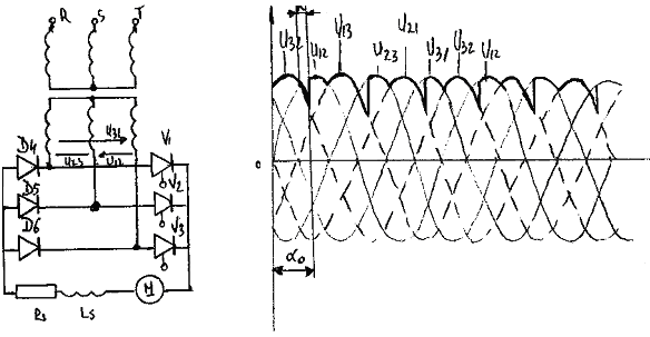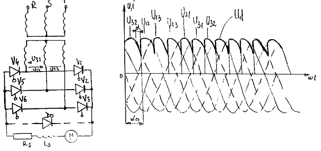 Redresorul trifazat cu tiristoare este prezentat in fig.