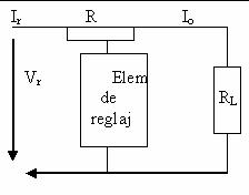 Rezistenta R, numita rezistenta de "balast" este cea care preia variatia tensiunii de intrare ; rezistenta mai limiteaza si curentul maxim prin elementul de reglaj .Aceasta limiteaza si la variatia curentului de sarcuina. La o crestere a curentului prin sarcina => cresterea curentului