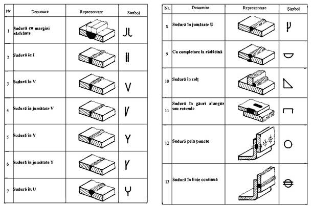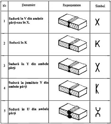 Tabelul 2. Simbolurile sudurilor simetrice.