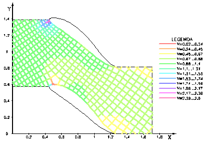 reversibil īn S īn sectiune (fig.4.6) - generat din profilul NACA4424, cu ap=0.7l (puncul de inflexiune), bordul de atac marit (fig.4.7), bordul de fuga marit (fig.4.8), domeniul de analiza a retelei (fig.4.9), cāmpul hidrodinamic - φ si ψ constant (fig.4.10), cāmpul de viteze pe frontiera profilului (fig.4.11), cāmpul de presiuni pe frontiera profilului (fig.4.12), cāmpul de viteze īn zona bordului de atac (fig.4.13), cāmpul de presiuni īn zona bordului de atac (fig.4.14), cāmpul de viteze īn zona bordului de fuga (fig.4.15), cāmpul de presiuni īn zona bordului de fuga (fig.4.16), cāmpul de variatie a vitezei prin retea (fig.4.17) si cāmpul de variatie a presiunii prin retea (fig.4.8).