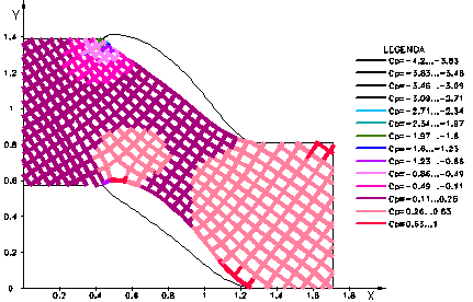 Fig.4.18 Cāmpul coeficientului de presiune prin reteaua de profile īn S - curgerea directa - sectiunea 0 |