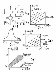de zgomot termic de valoarea rezistentei (b) si de frecventa (d).