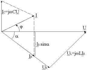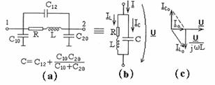 fig.6.2 Scheme echivalente ale rezistorului (a; b) si diagrama fazoriala (c).