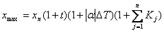 unde: xj si x0, sunt valorile înainte si dupa actiunea factorului j, valoarea maxima are expresia: