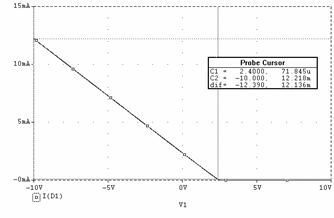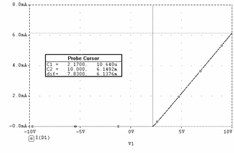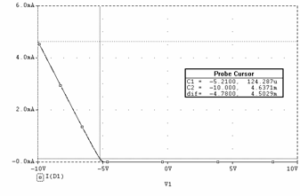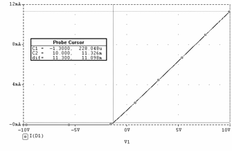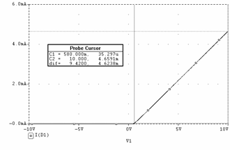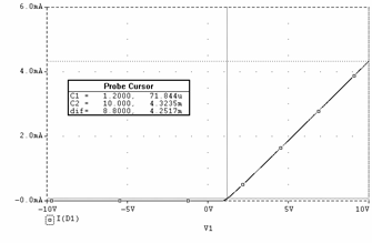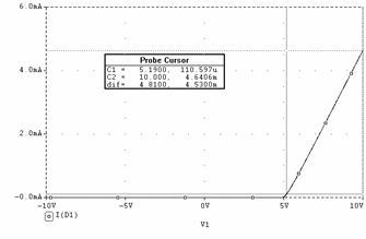 Valoarea maxima a curentului prin dioda (iD) se obtine maximizând valoarea uIN (uIN = 10V) în relatia precedenta. Se obtine astfel valoarea: 4,64mA.