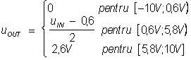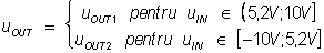Dupa efectuarea calculelor se obtine valoerea de prag de 5,8V. sI astfel functia de transfer se poate scrie (vezi figura 3.8e pentru reprezentare):