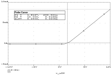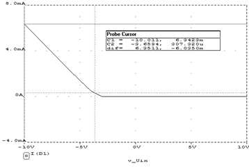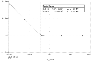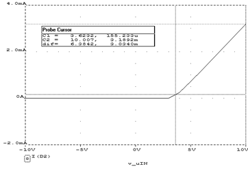 Pentru circuitul din figura 4.3a, stiind ca tensiunea de intrare uIN -10V, 10V si tensiunile E1=1V, E2=2V sa se deduca expresia tensiunii uOUT si sa se reprezinte grafic. Care este valoare maxima a curentului prin dioda D1? Sa se reprezinte pe acelasi grafic uIN si uOUT daca uIN este un semnal sinusoidal cu amplitudinea de 10V si frecventa de 1kHz.Parametrii ce caracterizeaza diodele sunt: uD0 = 0,6V, rD = 10W si IS = 0A.