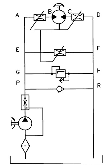 Simbolul detaliat al servomecanismului este indicat în figura1, iar schema hidraulica echivalenta este prezentata în figura2.