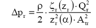 Caderea de presiune pe droselul Dr se determina cu relatia: