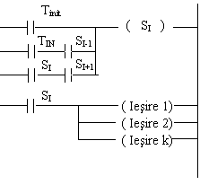 Generarea variabilelor de iesire se obtine fara dificultate utilizānd facilitatile de alocare a iesirilor oferite de un CLP. Īn figura 11.8 este reprezentata diagrama ecuatiei 11.4 si instructiunile corespunzatoare.