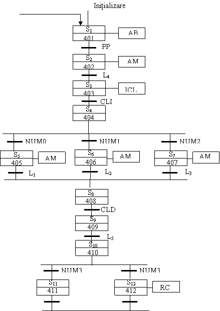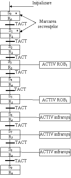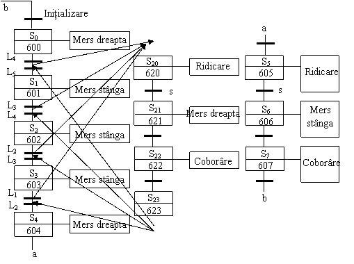 Figura 11.13 Īn figura 11.14 se poate urmari grafcet-ul traectoriei. Se poate remarca