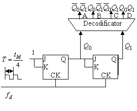numarator modulo 4 activat cu un generator de impulsuri cu perioada