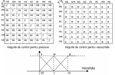 Baza de reguli este data în tabelul din Tabelul 13.5 iar functiile de apartenenta utilizate sunt prezentate în figura 13.55, etichetele lor având simbolurile conventionale.