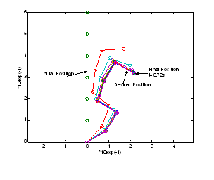unde w=(x,y)T iar J(q) este matricea Jacobian a bratului. Evolutia parametrului k în controlerul conventional este prezentat în figura 13.57 iar portretul de faza al miscarii si evolutia pe traiectorie sunt prezentate în figurile 13.58 si 13.59, respectiv.