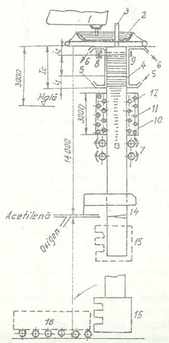 Fig. 1.1. Instalatie de turnare continua verticala cu fir drept |