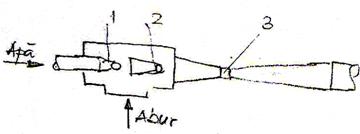 amestecatorului cu jet 2.ajutajul treptei a 2 a 3.Injector