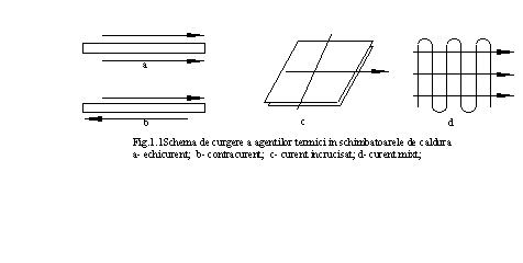Sensul de curgere pentru cele doua fluide (cald si rece) in cazul schimbatoarelor recuperatoare sau cu suprafata este prezentat schematic in fig. 1.1.