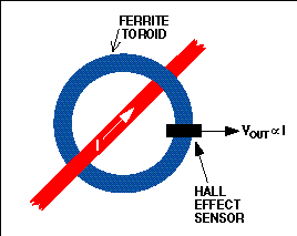 Senzorul Hall din īntrefierul torului simnte campul magnetic īn acest senzor de