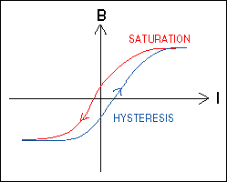 Efectele neliniare sunt saturarea si histerezisul materialului magnetic al