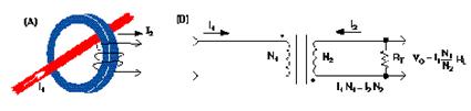 Transformatorul de curent este o solutie simpla de masurare izolata galvanic īn cazul particular, dar des īntalnit, al curentului alternativ pur sinusoidal. La fel cu senzorii de curent magnetici acesta este construit de obicei pe un tor din material feromagnetic (fig. 11A). Transformatorul de curent functioneaza ca orice transformator, curentii din īnfasurarile primar si secundar fiind legati de relatia: