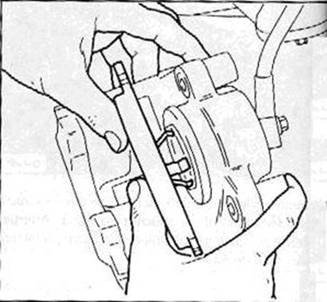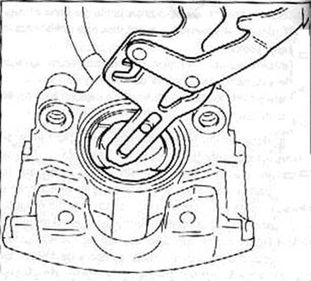 Atentie: Ia comprimarea pistonului se refuleaza lichid de frana din pompa de frana in rezervorul de compensare.A se monitoriza nivelul lichidului in rezervor,eventual se aspira lichidul de frana cu ajutorul unui sifon.