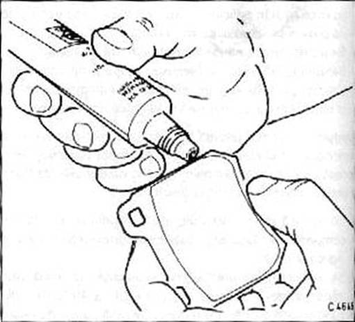 Pentru a evita scartairea franelor cu disc,se unge suportul lateral al partii posterioare a placutelor de frana cu un strat subtire de unsoare,de ex.OPEL 19 42 585 Plastilube sau Liqui-Moly LM-36 sau LM-508-ASC.A se unge doar partea posterioara de metal,unsoarea nu trebuie sa ajunga pe placuta de frana in sine.Daca este nevoie,se sterge imediat si se curate cu alcool.