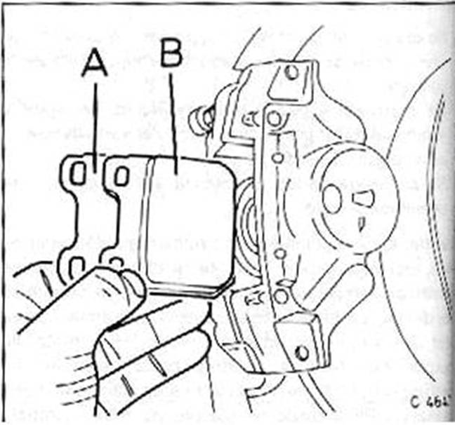 -Se introduc placutele de frana -B- cu placile intermediare -A- in entrierul de frana.