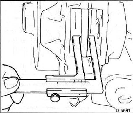 Se dispune sablonul pentru pistonul de frana la suprafata inferioara de ghidare a etrierului.Pozitia pistonului este corecta daca sablonul(pozitia de 20 de grade)coincide cu muchiile pistonului.