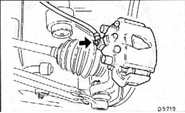 -Se demonteaza conducta de frana de la etrierul de frana si se obtureaza cu un dop.