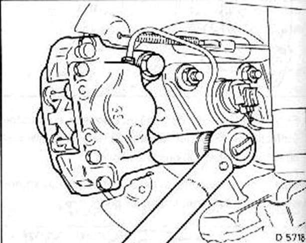 -Se monteaza etrierul de frana respectiv suportul de frana pe fuzeta.Etrierul de frana anterior cu 95 Nm etrierul de frana posterior cu 80 Nm.