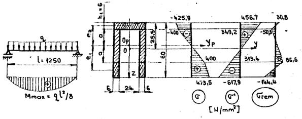 7 Sa se determine valoarea sarcinii q la grinda din figura 2, daca se cunoaste înaltimea zonei plastice în partea superioara h1 = 6 mm. Sa se determine apoi tensiunile remanente la descarcare.