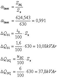 Se adopta din scoaterea valorilor standardizate transformatorul cu puterea nominala imediat superioare valorii teoretice sn min .