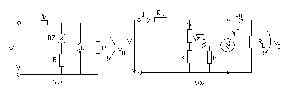 care spune ca tranzistorul din schema are rolul de extindere a domeniilor de curenti ai stabilizatorului parametric format din rezistorul R si dioda DZ, coeficientul de stabilizare modificându-se.