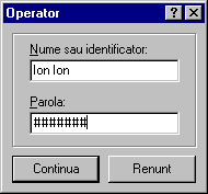 Daca totul este în regula, va fi afisata fereastra de acces la resursele programului; completati câmpurile din aceasta fereastra si apasati butonul Accept.
