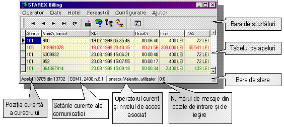 Beneficiind de avantajele oferite de platforma grafica Windows, sistemul de evidenta a convorbirilor telefonice permite prelucrarea datelor primite de la centrala telefonica si stocarea acestora în baza de date. Comunicatia între centrala si calculator este asigurata de interfata seriala.