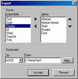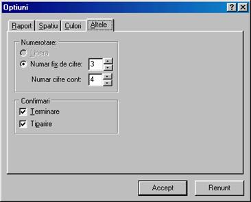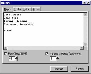 Fereastra Optiuni este alcatuita din 4 pagini: In pagina Raport este descris formatul