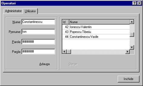 Administrator: operatorul are acces la toate comenzile programului;