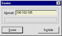 Comanda folosita la sosirea unui client. Ca urmare a folosirii comenzii va fi permis accesul abonatilor la oras (pentru unele centrale). În fereastra Sosire completati câmpul Abonati si apasati butonul Sosire.