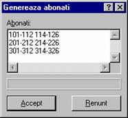 Pentru a adauga mai multi abonati odata apasati butonul Adauga. Va rasari caseta de dialog Genereaza abonati.