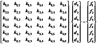 Problema consta in gasirea, in sistemul propriu de referinta, a unei relatii de legatura intre deplasarilor extremitatilor saibei (d1, d2, d3, d4, d5, d6) si fortele corespunzatoare (f1, f2, f3, f4, f5, f6), de forma data de relatia E.1.1.1: