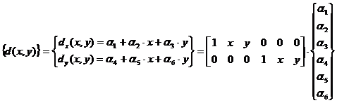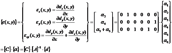 Se face ipoteza ca pe toata suprafata saibei deplasarile punctuale dx(x,y) si dy(x,y) sunt date de functii cu variatie liniara (polinomiala), de forma data de relatia E1.1.2